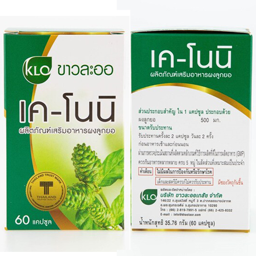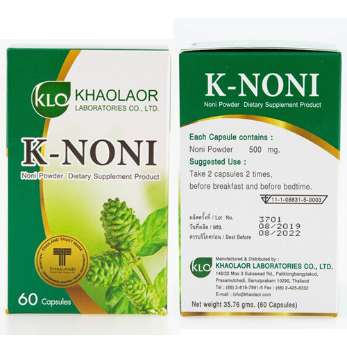 K-Noni เค-โนนิ ผลิตภัณฑ์เสริมอาหารผงลูกยอ 60 แคปซูล (ขาวละออ)