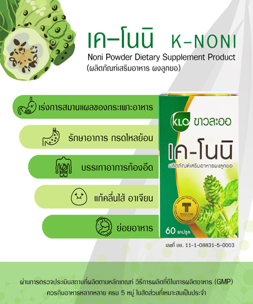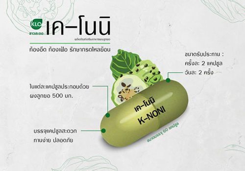 K-Noni เค-โนนิ ผลิตภัณฑ์เสริมอาหารผงลูกยอ (Noni Powder) 60 แคปซูล (ขาวละออ)