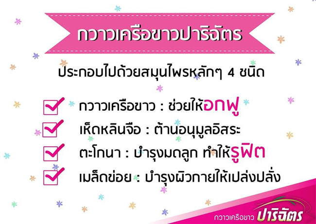 ด้วยคุณค่าสารสกัดจากกวาวเครือขาว และผสมด้วยสมุนไพรชั้นยอดชนิดอื่น ๆ อีก