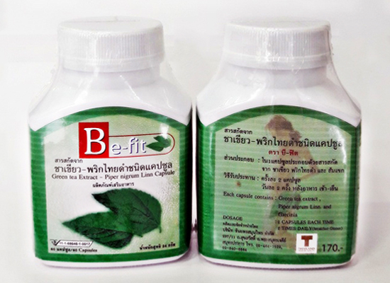 สารสกัดจากชาเขียว-พริกไทยดำชนิดแคปซูล(60 แคปซูล)ตรา บี-ฟิต หุ่นเฟิร์ม